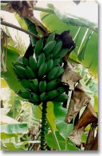 The Apple Banana (also called by its Spanish name of Manzano) is known for its tasty fruit. To some people, the snow white pulp is flavored like a cross between a fully ripened apple and vanilla ice cream. I will probably never know it that is true or not. But what I do know (and like) is the Apple Banana is a vigorous grower. As a bonus, it easily adapts to most soils, being grown from Thailand to the deepest jungles of the Amazon. It is quite cold tolerant, and can take temperatures approaching frost with no damage. The plant is a solid green with just a margin of red around the leaf.
